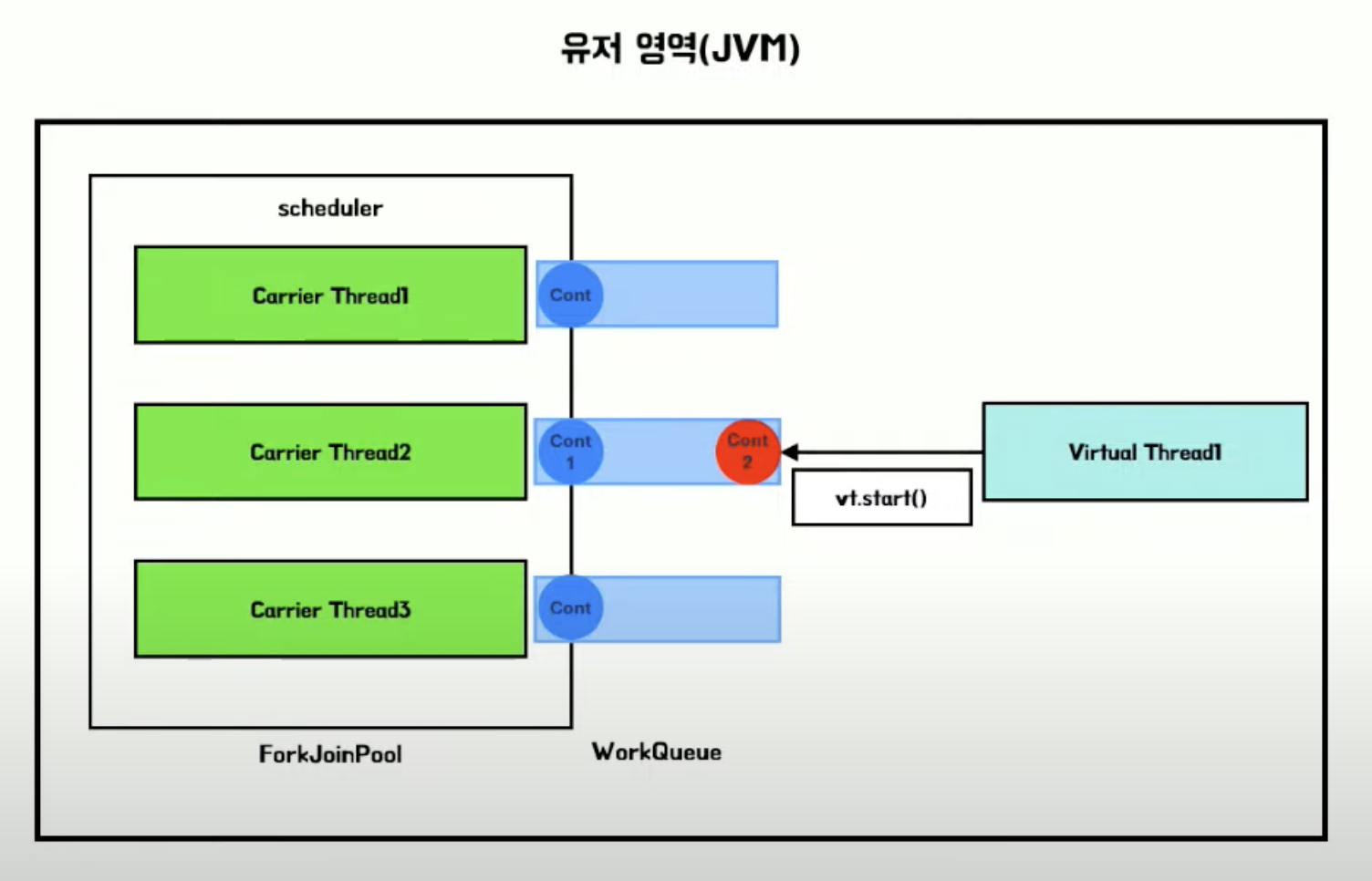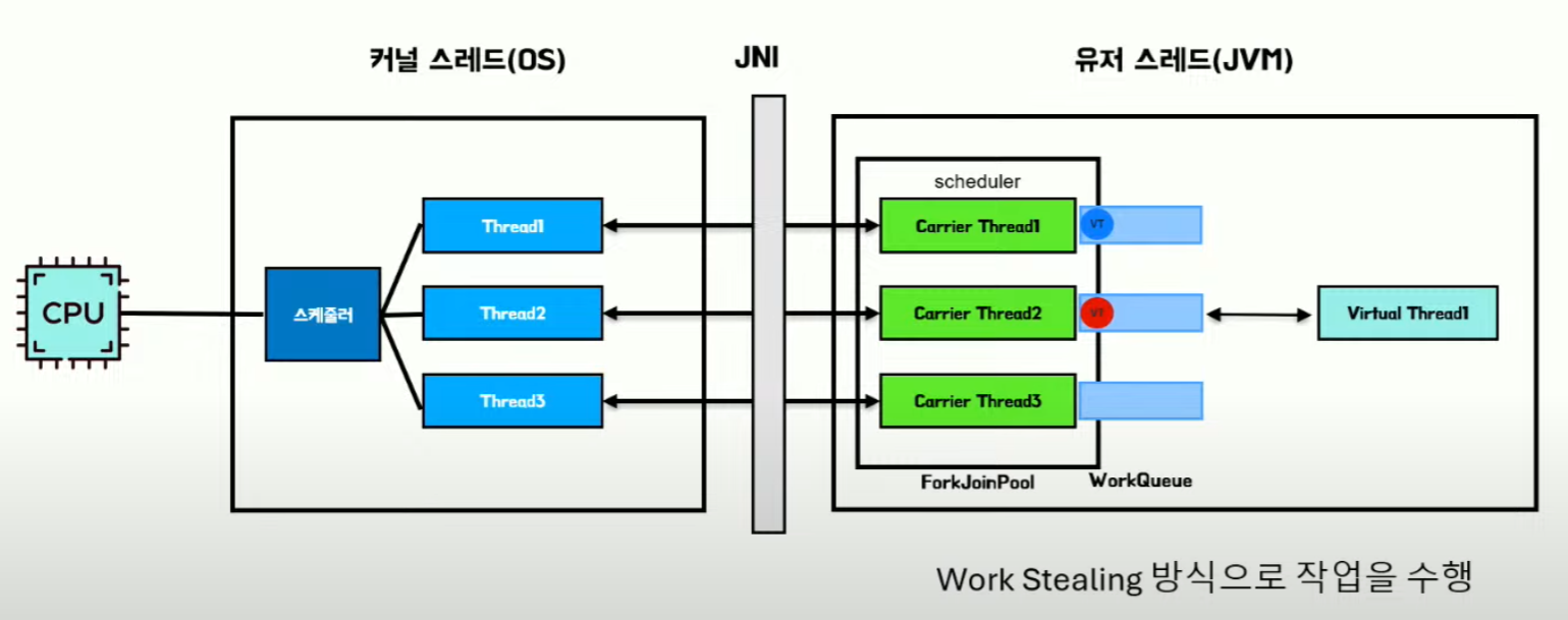 static final ForkJoinPool // 모든 Virtual Thread 는 동일한 스케줄러를 공유