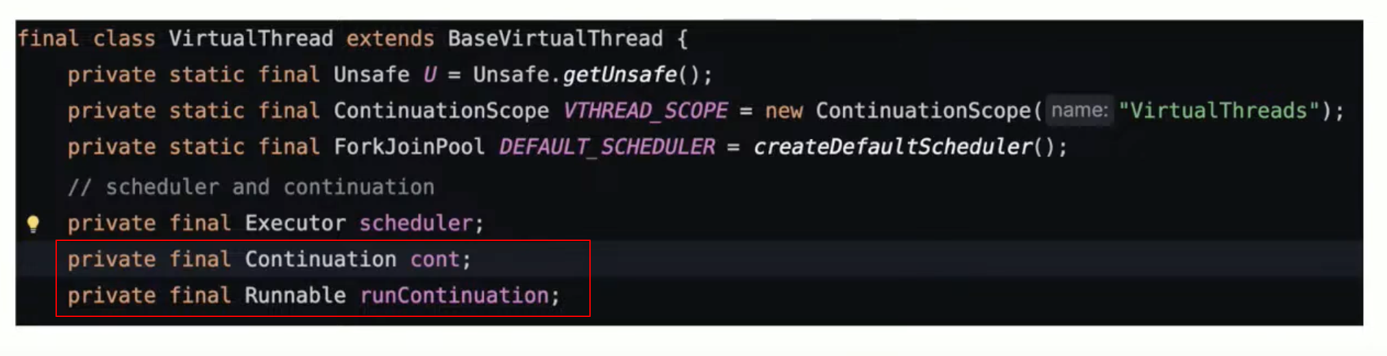 Continuation cont; // vt 의 field 로 cont, task continuation 임을 알 수 있음