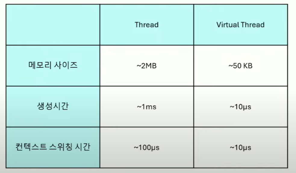 - 스레드 생성 및 스케줄링 비용이 기존 스레드보다 저렴