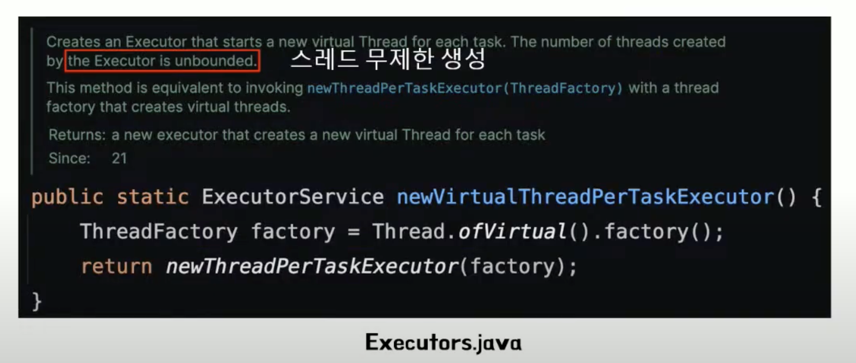 아래처럼 virtual thread 의 excutor is unbounded