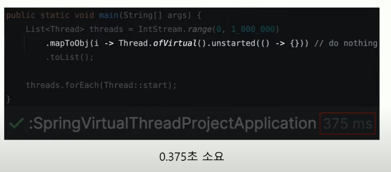 기존 스레드 32초 vs Virtual Thread 0.4 초