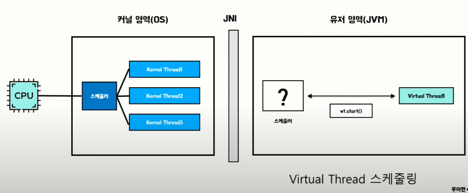 - OS가 아닌 JVM내 스케줄링