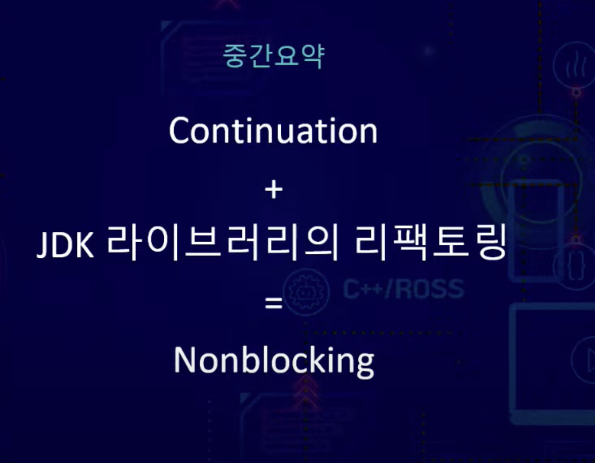 - Project Loom 은 아직 개발 중이었기 때문에 Kotlin Coroutine 선택