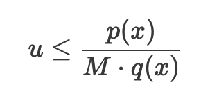 u≤p(x)/M⋅q(x)- 조건이 참이면 를 샘플로 수락합니다.