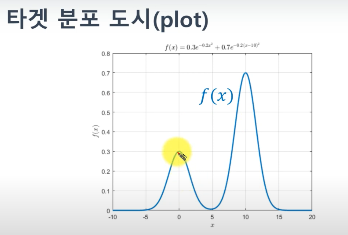 - 목표 분포(Target Distribution): 우리가 샘플링하고자 하는 원래의 확률 분포 p(x). 이 분포는 직접 샘플링하기 어려울 수 있습니다.