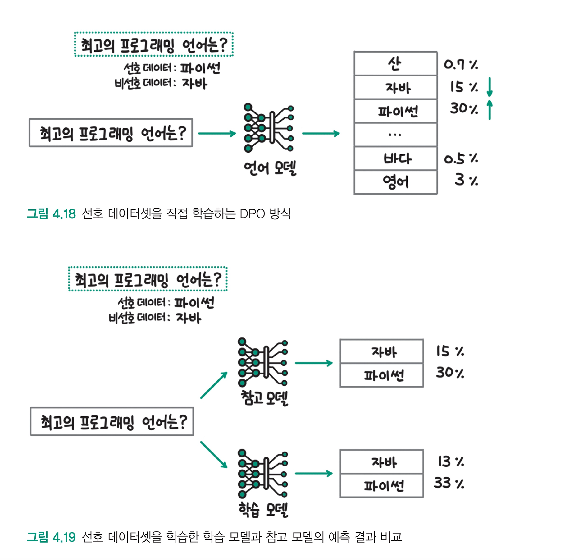 다음으로 선호 데이터셋을 직접 LLM이 학습하는 방식으로 변경해 열풍을 일으킨 직접 선호 최적화(DPO, Direct Preference Optimization)에 대해 살펴본다