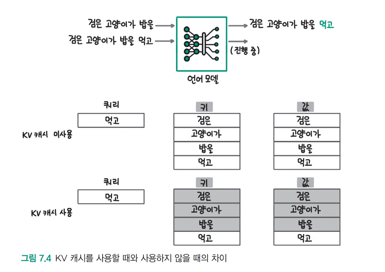 7.4 kv 캐시를 사용할 때와 사용하지 않을 때의 차이