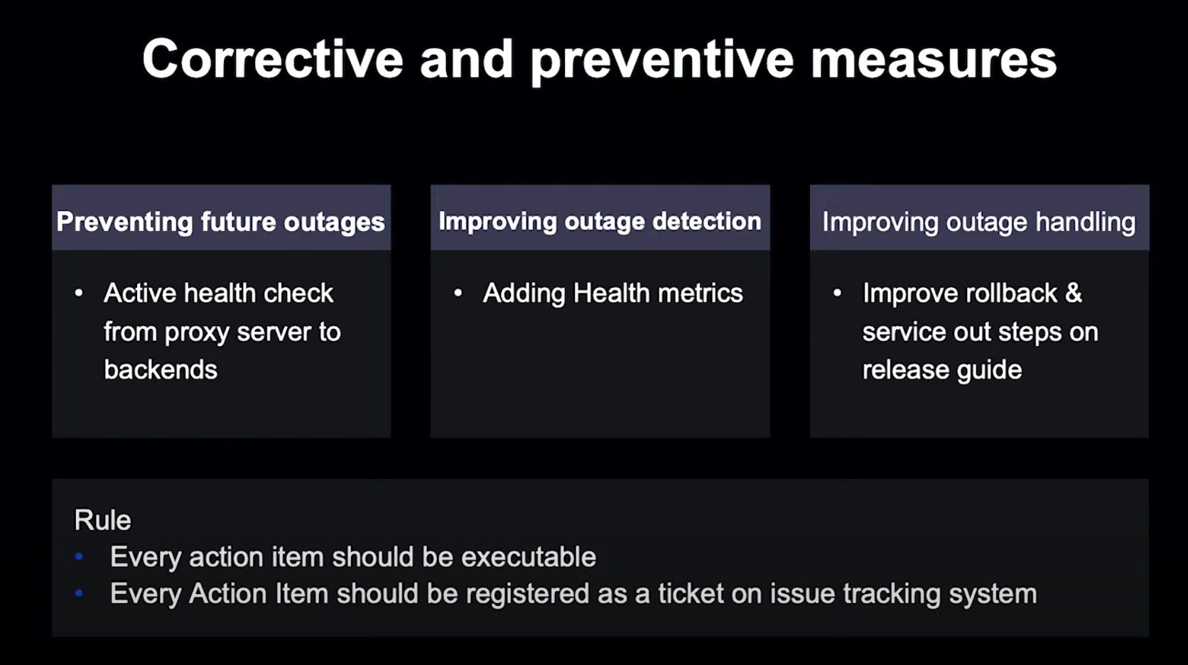장애 재발을 위해, 미결 Ticket을 OKR ( 목표관리 프레임워크) 에 포함시켰다고 한다