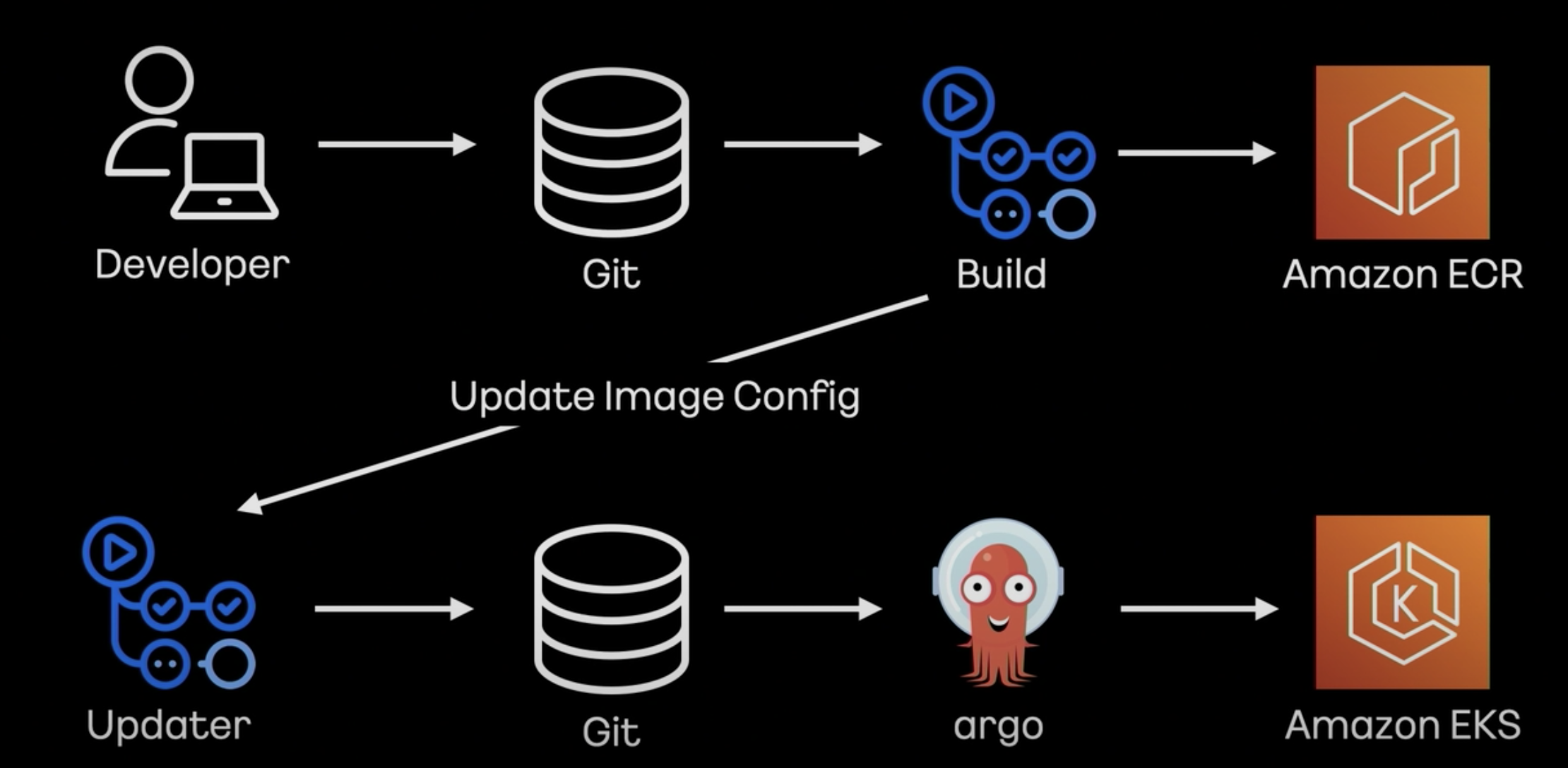 gitOps 를 위해 ArgoCD 까지 포함하여, 아래와 같은 구성도 완성