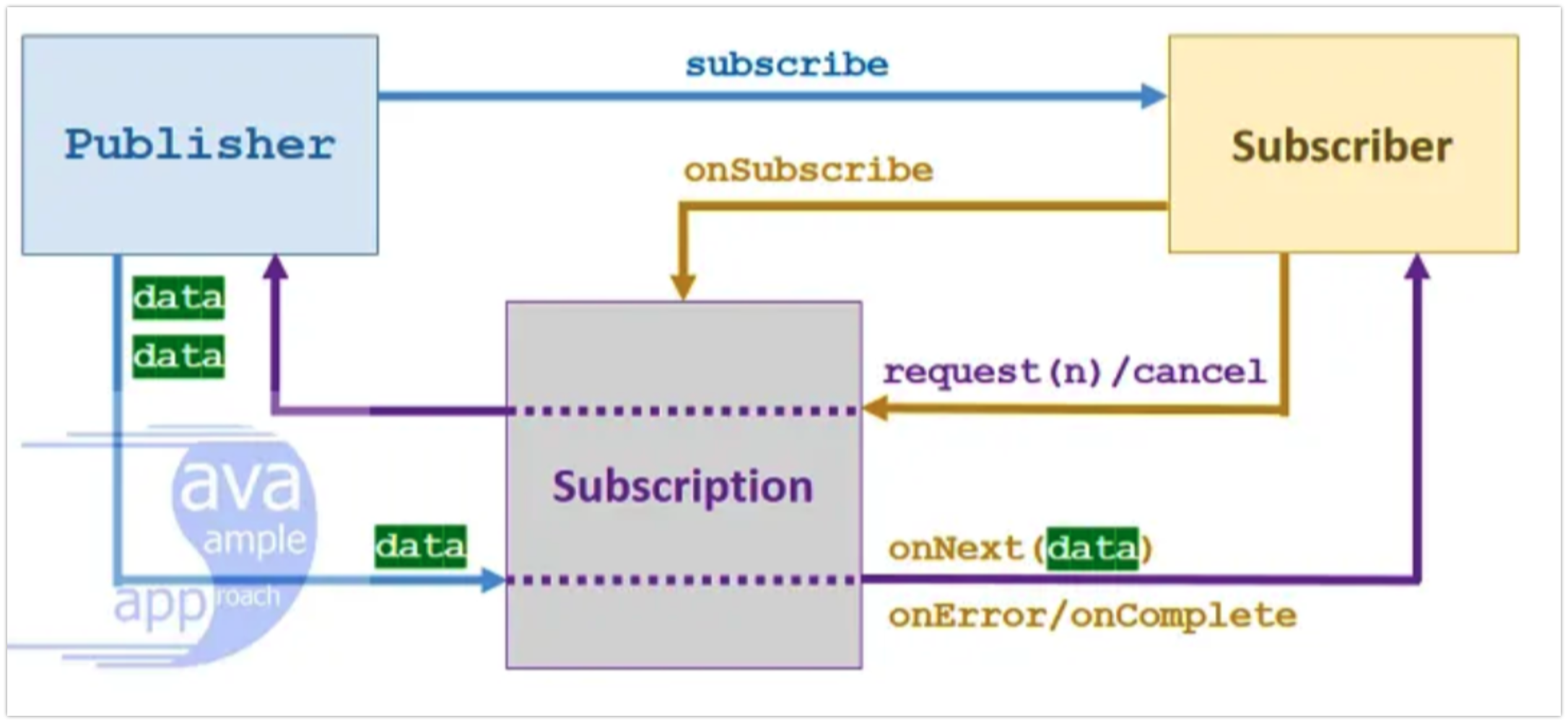 public interface Subscription{ public void request(long n); public void cancel(); }req 갯수 또는 구독 취소