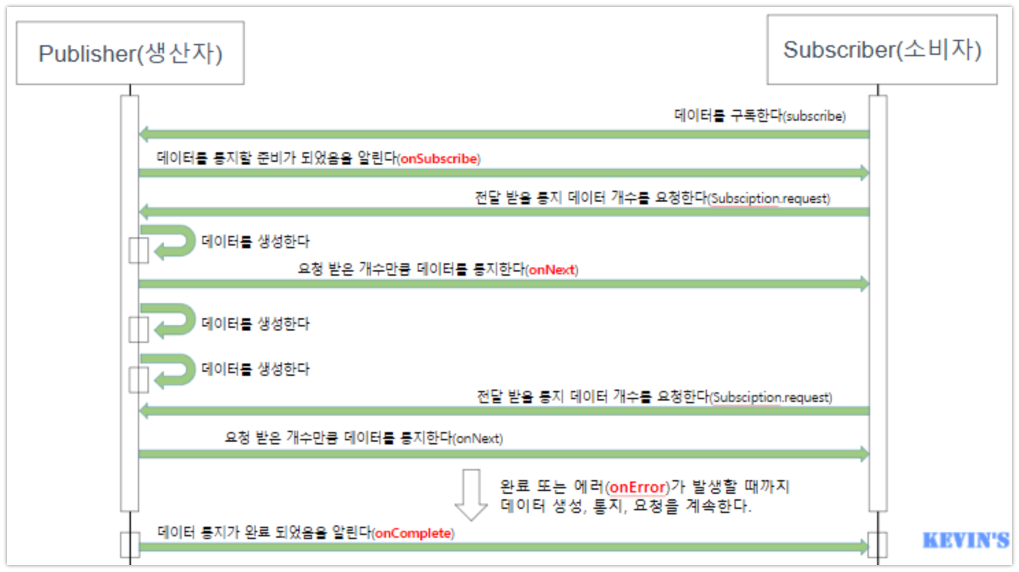 onSubscribe 메서드의 파라미터로 전달되는 Subscription 객체를 통해서 이루어 집니다